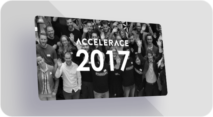 2017 We accelerated some startups... Screened startups Camps provided Accelerated startups Startup funding secured Tailored accelerator programs Participants from 12 countries … and teamed up with corporations In case you missed our year 6 January Accelerace Alumnus The Eye Tribe (VR) gets acquired by Facebook 13 February Start of the new acceleration batch including Tech, Life science and Biotech startups 6 March Accelerace launches together with ISDI and FundingBox the IMPACT Growth initiative which accelerates and funds startups with €100k 26 June We kick off the second acceleration batch with 24 Tech, Foodtech, Cleantech, Life science 4 July and Medtech startups We get nominated as Top 10 acceleration program in Europe (by Venionaire) 5 September Accelerace wins the Nordic Startup Award as Best Danish accelerator 18 October Winning the Nordic Startup Award as best accelerator in the Nordics and nominated for the global award 24 October NOME Annual Meeting and Startup Competition 18 December Elia and Accelerace join forces to help startups grow in the electricity industry End of December We secured a 10,7mn DKK investment from Færch Foundation, the Danish Growth Fund and Symbion Communications +1’000’000 198 Facebook impressions Press clippings 1’350 71 New twitter followers Published blogs & articles 6’800 Social media followers Accelerace team New employees joining Venture Scouts onboarded Thanks for making 2017 exceptional. Together with you, we were able to shape the ecosystem, scale startups and team up with high caliber corporations. We are looking forward to the next year full of initiatives and accelerations.